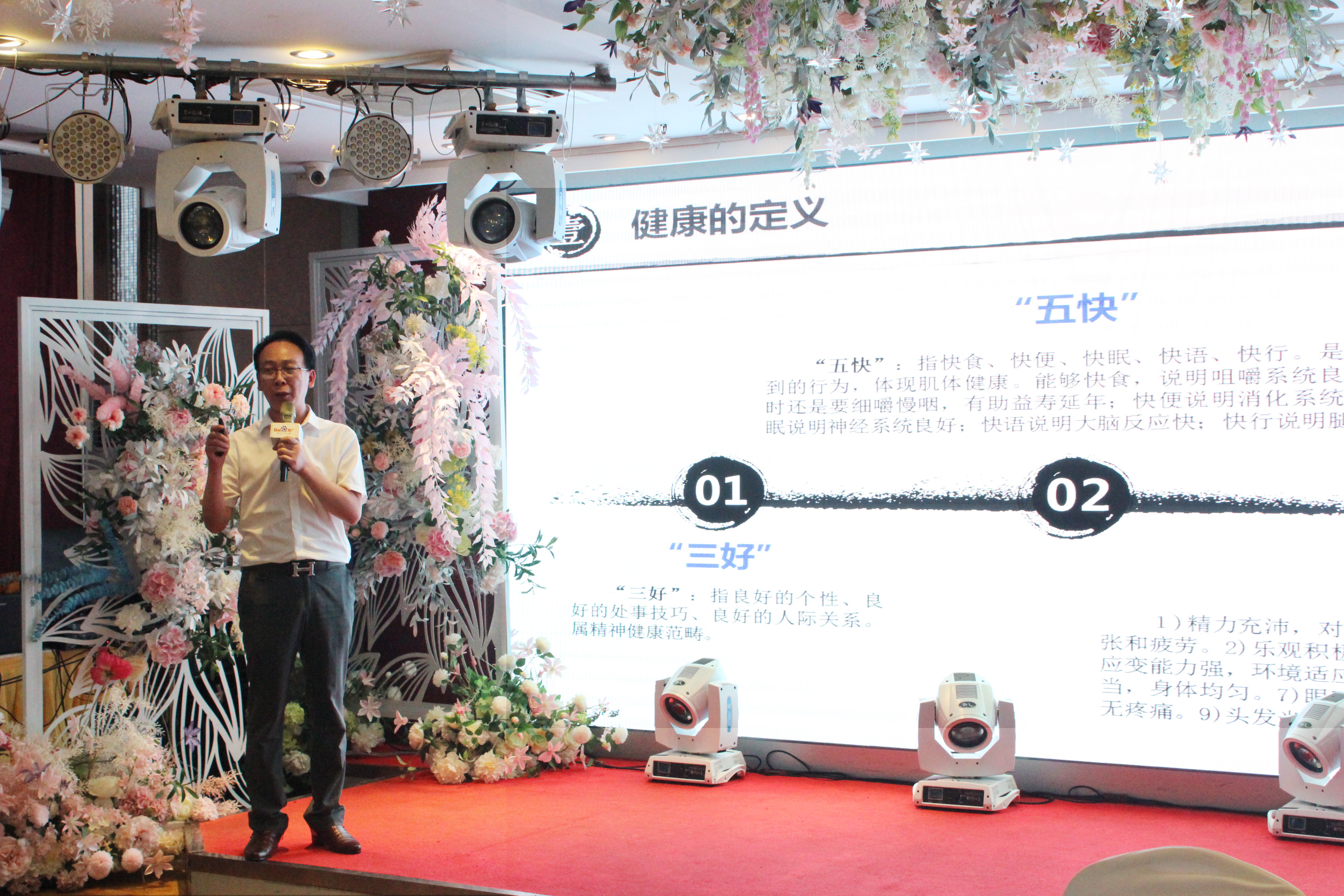會議上,邀請到了南京太乙堂中醫(yī)院中醫(yī)科主任梁世界與大家分享中醫(yī)養(yǎng)生的知識。梁主任現(xiàn)場和大家分享當(dāng)代對“健康”的定義,并介紹了影響健康的個人因素、中醫(yī)的養(yǎng)生理念,日常生活中如何養(yǎng)生保健。到健康提問環(huán)節(jié)時,大家都積極提問,梁主任一一作答。