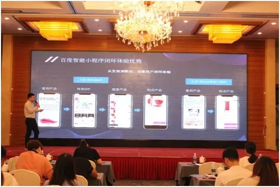 百度一直致力于將強(qiáng)大的內(nèi)容搜索能力與先進(jìn)的AI技術(shù),更好地融合到百度的眾多產(chǎn)品中,更優(yōu)質(zhì)地服務(wù)到本地企業(yè),其中百度小程序已經(jīng)被企業(yè)所認(rèn)可和熟知。南京首屏集團(tuán)技術(shù)總監(jiān)周安石向大家介紹了百度小程序的優(yōu)勢(shì)和特點(diǎn),以及來(lái)自百度全系列產(chǎn)品以及百度合作平臺(tái)的全域流量,而愛(ài)采購(gòu)產(chǎn)品的百度搜索流量剛好與百度小程序形成互補(bǔ),讓商家的流量實(shí)現(xiàn)快速增倍增長(zhǎng)。